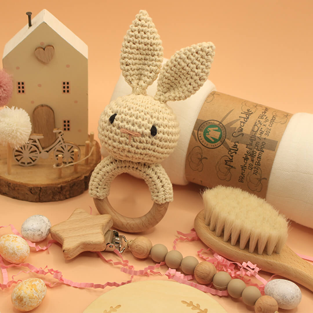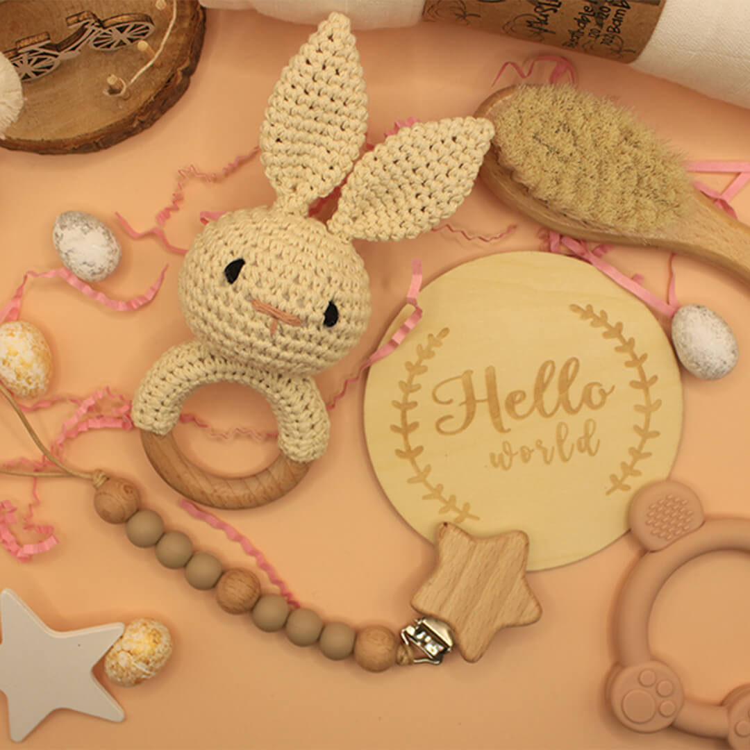 A kiegészítők természetes, bababarát anyagokból, például fából és pamutból készülnek. Nemcsak szépek, hanem biztonságosak is a baba számára.