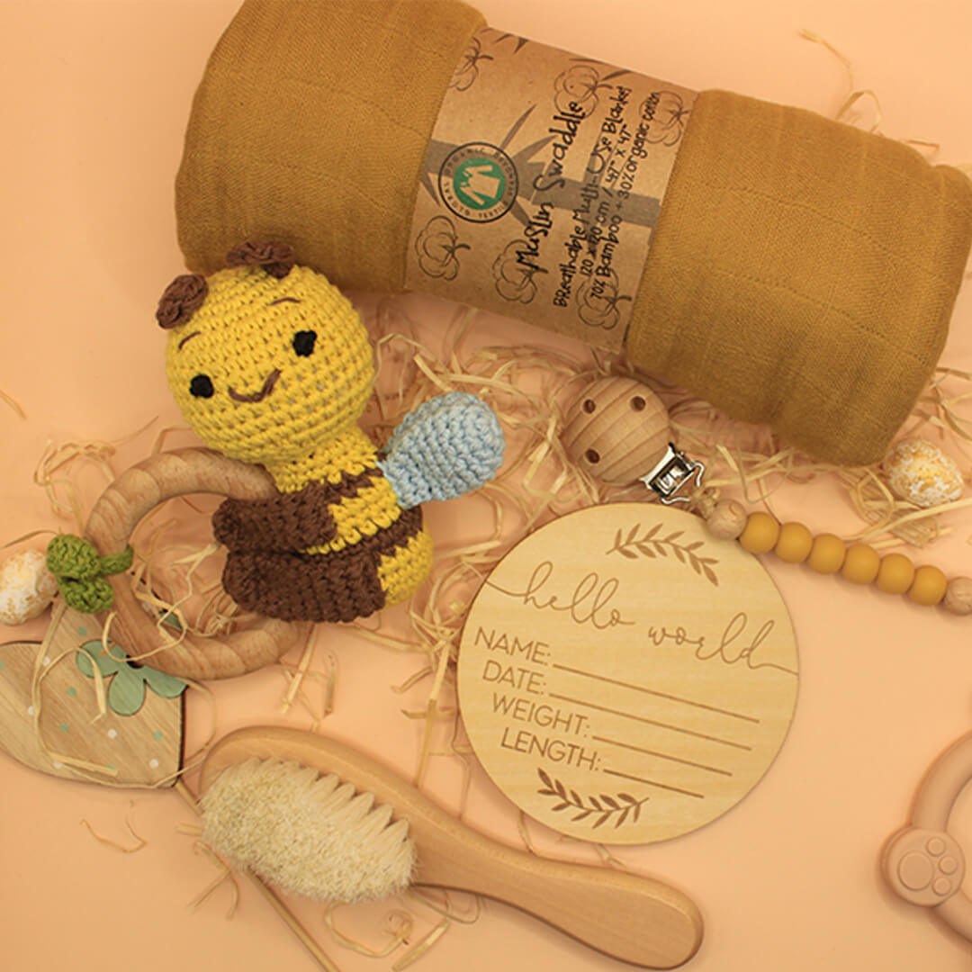 A kiegészítők természetes, bababarát anyagokból, például fából és pamutból készülnek. Nemcsak szépek, hanem biztonságosak is a baba számára.
